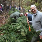 This year the honour of felling the specially selected tree went to Fjære Kirke minister Helge Spilling who was then assisted by members of the society, including chairman Per-Kristian Finstad, in removing it from the forest.