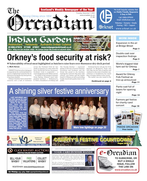 At last, we are glad to let you know that we will be supplying this week’s edition of The Orcadian to Mainland retailers open late tonight, and to other retailers from first thing tomorrow (Saturday).