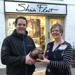 The Christmas Day boys’ ba’, which has been made by Danny Bain, was donated by Billy Hough, and is displayed in the Sheila Fleet window in Bridge Street.