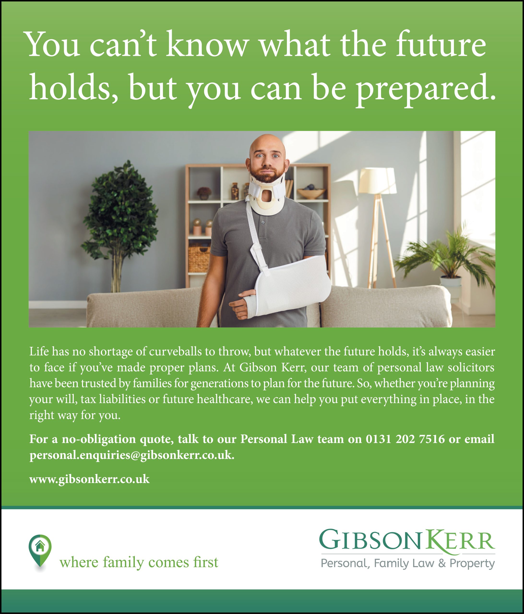 Phone: 0131 202 7516 or email personal.enquiries@gibsonkerr.co.uk for more information.
