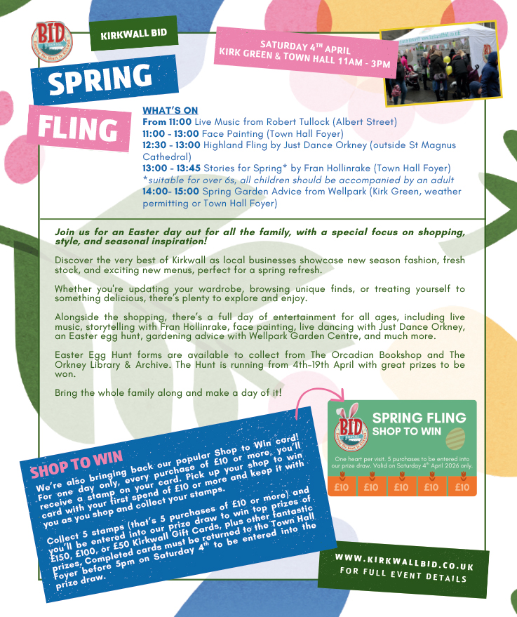 www.kirkwallbid.co.uk/whats-on/events/spring-fling-2026 for full event details.