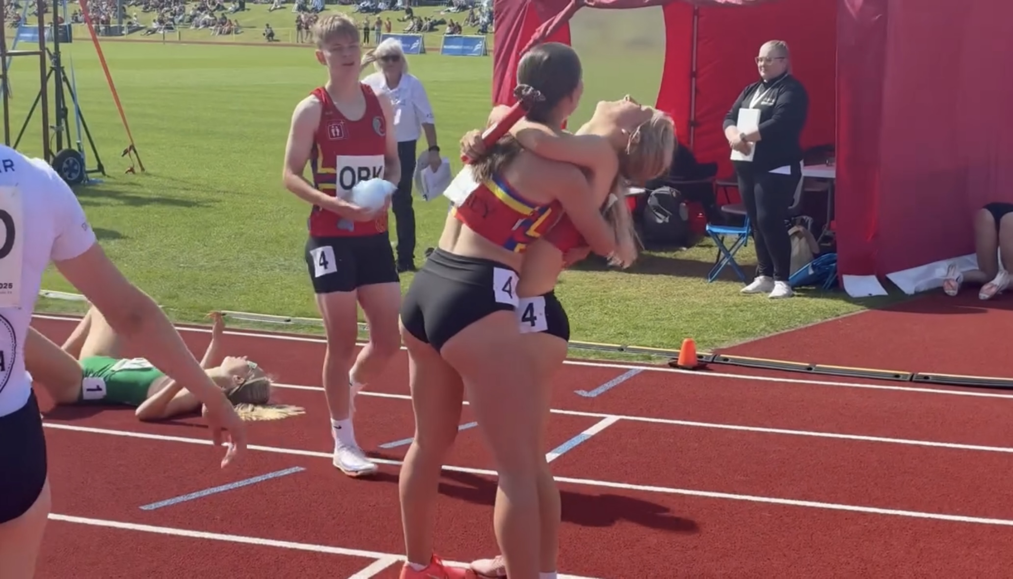 Emily McArthur crossed the finish line to win another for the 4x400m team for Orkney!