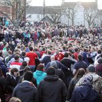 The boys’ Ba’ commenced with the throwing of the game’s trophy at the traditional spot in front of St Magnus Cathedral at 10 am. This year Jim Coltherd had the honour of pitching the ba’ into the pack and beginning the game