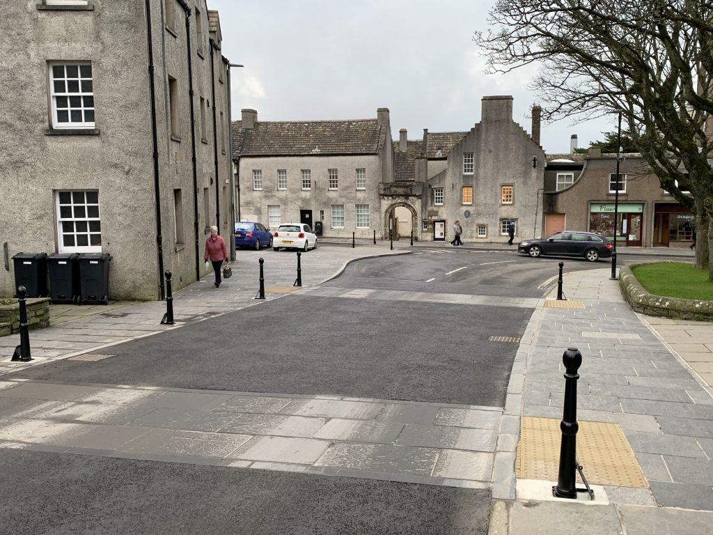 Vehicle access to Victoria Street is now reinstated, although Tankerness Lane, and the parking spaces outside the Daily Scoop, will remain closed temporarily to allow the new paving to cure.
