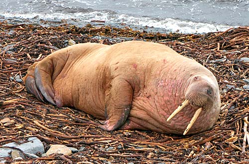 The walrus is said to look healthy and, judging by his foot-long tusks, is thought to be a young male.